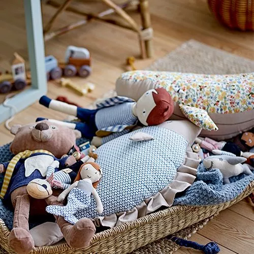 Niet alleen om te knuffelen, maar deze grote, fleurige knuffelwalvis vraagt erom helemaal omhelst te worden. De walvisknuffel van het Deense merk Bloomingville is een knusse knuffelvriend en net zo sloom zwemt hij als dat hij kijkt.