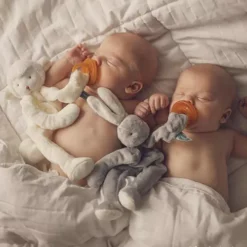 Zoeken naar de speen is niet meer nodig met deze speenknuffel ‘Lammetje’ van het Engelse merk Bunnies by the Bay. Dat is niet alleen praktisch, maar ook erg gezellig, want de speenhouder is tegelijkertijd een aaibaar schapenknuffeltje om goed vast te houden.
