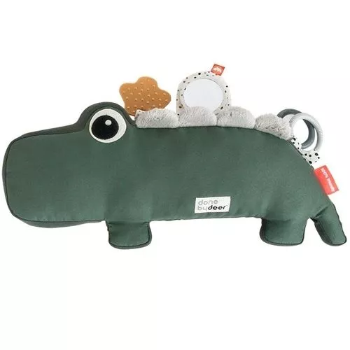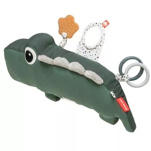 Voel aan Croco’s fluweelzachte stekeltjes, frummel aan de labeltjes op zijn ruggetje, hoor hoe hij knispert of bewonder allerlei spiegelbeelden in het kindveilige spiegeltje. Met bijtringen van verschillende vorm en reliëf om de pijn van doorkomende tandjes te verzachten.