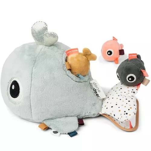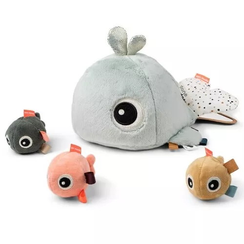Verstoppertje spelen met ‘Hide and Seek Activity Toy – Wally’ van het Deense merk Done by Deer. Knuffelwalvis Wally en zijn vissenvriendjes zullen de kleine urenlang vermaken.