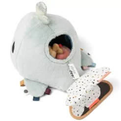 De verschillende texturen en labeltjes van Wally en zijn vissenvriendjes stimuleren de tastzin. Op zijn staart heeft Wally nog een verrassing: een kindveilig spiegeltje waar de kleine zichzelf in kan bewonderen.