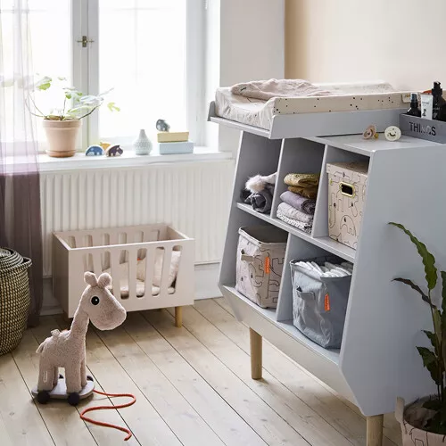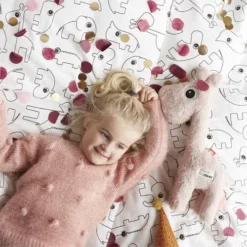 Gezellig samen de eerste stapjes maken met knuffelgiraffe ‘Pull Along Raffi, Powder’ van het Deense merk Done by Deer.