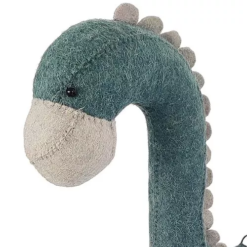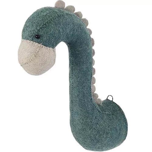 Een vriendelijke diplodocuskop, ontworpen door de Engelse Fiona Walker. Deze blauwgrijze dino met karakteristieke uitsteeksels heeft een mooie kromming in zijn hals en is daarmee een geweldige eye-catcher in de kinderkamer, speelkamer of woonkamer.