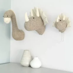 Een vriendelijke diplodocuskop, ontworpen door de Engelse Fiona Walker. Deze grijze dino met karakteristieke uitsteeksels heeft een mooie kromming in zijn hals en is daarmee een geweldige eye-catcher in de kinderkamer, speelkamer of woonkamer.