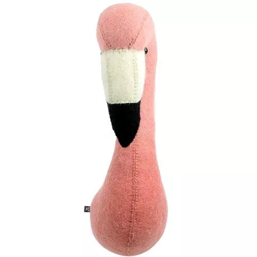 Een elegante flamingokop, ontworpen door de Engelse Fiona Walker. Deze zachtroze flamingo met karakteristieke snavel heeft een mooie kromming in zijn hals en is daarmee een geweldige eye-catcher in de kinderkamer, speelkamer of woonkamer.