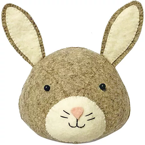 Een vriendelijke konijnenkop met opstaande oren, ontworpen door de Engelse Fiona Walker. De materialen en het ambachtelijke handwerk drukt zich uit in een robuuste uitvoering.