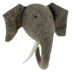 Deze vilten olifant in natuurgetrouwe kleuren heeft slagtanden, grote flaporen, een flinke slurf en kleine kraaloogjes boven op zijn kop. Daarmee neemt hij meteen voor zich in en is hij een verrijking in de kinderkamer, speelkamer of woonkamer. De wanddecoratie is eenvoudig aan de muur te bevestigen met een haak aan de achterzijde.