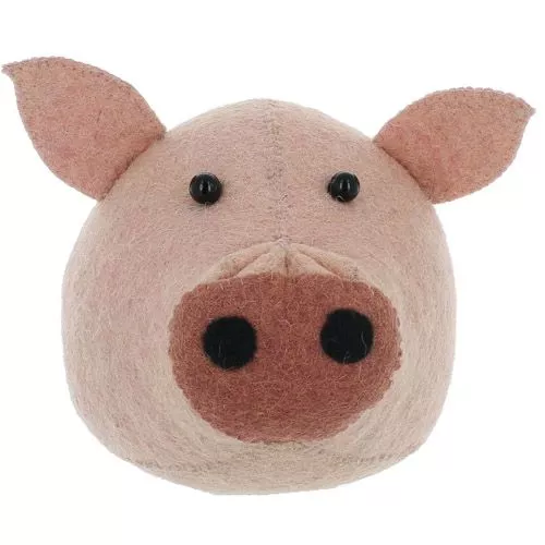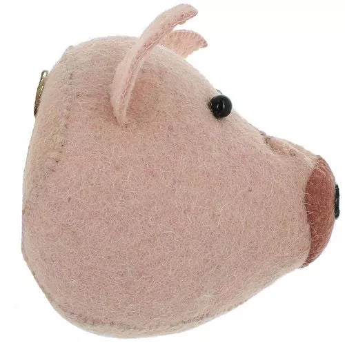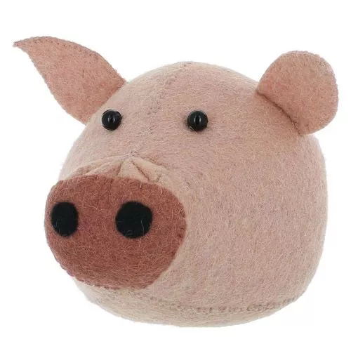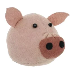 Een goedmoedig roze varkenskopje, ontworpen door de Engelse Fiona Walker. Dit vilten dierenkopje is een geweldige eye-catcher in de kinderkamer, speelkamer of woonkamer.
