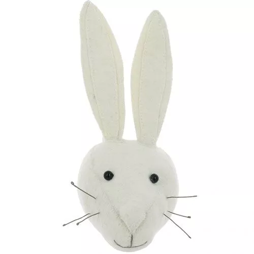 Dit vilten konijn met zijn sprekende oren is een geweldige eye-catcher in de kinderkamer, speelkamer of woonkamer. De wanddecoratie is eenvoudig aan de muur te bevestigen met een haak aan de achterzijde.