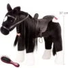 De schofthoogte van het speelgoedpaard is 37 cm. De totale hoogte is 52 cm. Speciaal gemaakt voor de XL stapoppen van Götz, die op haar kunnen zitten.