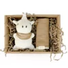 Een 6-delige set met de prachtige witte poppeneenhoorn ‘Agaath’ van het Duitse merk Götz. Dit mooie witte paard heeft prachtige zilveren lokken die gestyled kunnen worden. Borstel haar zachte vacht of haar lange haren met de borstel of doe de krulspelden in haar haren voor prachtige krullen en versier het met een zilveren strik.