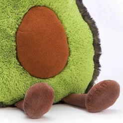 Een fluweelzachte avocadoknuffel uit de Amusables serie van het Engelse merk Jellycat, met een vriendelijke grijns en zwarte kraaloogjes.