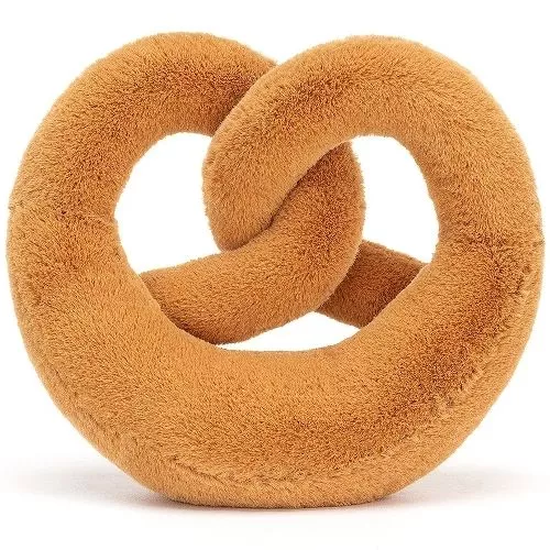 Deze ‘Amuseable Pretzel’ van het Engelse merk Jellycat is door zijn open vorm een grappige knuffel om vast te houden. Met een zacht vachtje, sproetjes en vrolijke kraaloogjes is deze koekjesknuffel een fijn tussendoortje om even mee te knuffelen. Zijn beentjes van corduroy en lijfje gevuld met korreltjes zorgen ervoor dat de knuffelkrakeling kan zitten, al heeft hij liever een steuntje in de rug.