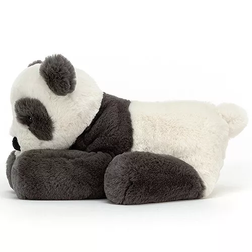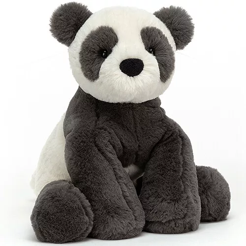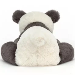 Met zijn flinke poten geeft deze goedaardige panda ‘Huggady Panda’ uit de Super Softies serie van het Engelse merk Jellycat stevige knuffels. De fluweelzachte, houtskoolzwarte knuffelpanda met ronde oren en zwart omrande kraalogen is een knuffelmaatje om mee weg te dromen.