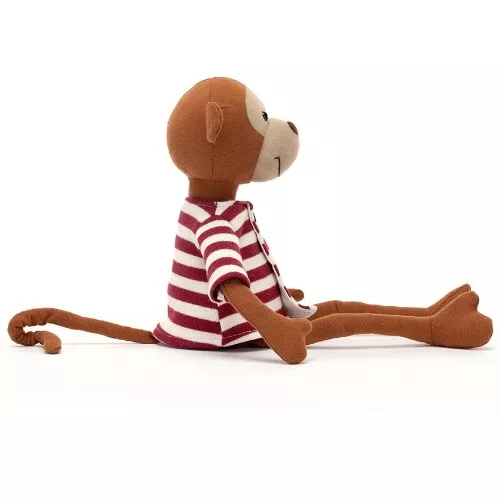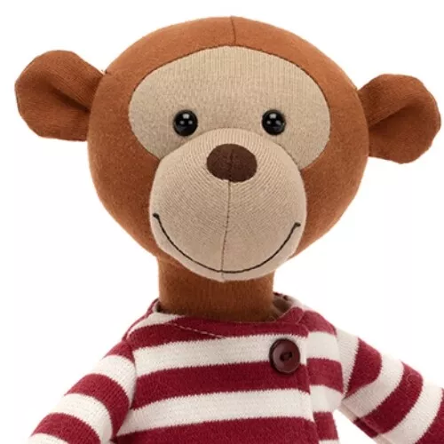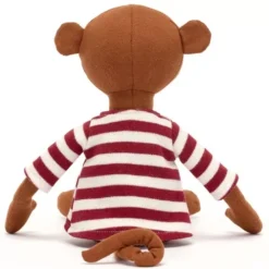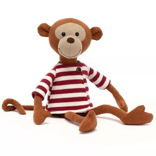 Met een gulle lach houdt knuffelaap ‘Madison Monkey’ van het Englese merk Jellycat wel van een grapje. Met haar gebreide streepjestrui, vacht van jerseystof en rondje kraaloogjes is deze apenknuffel een opperbest maatje.