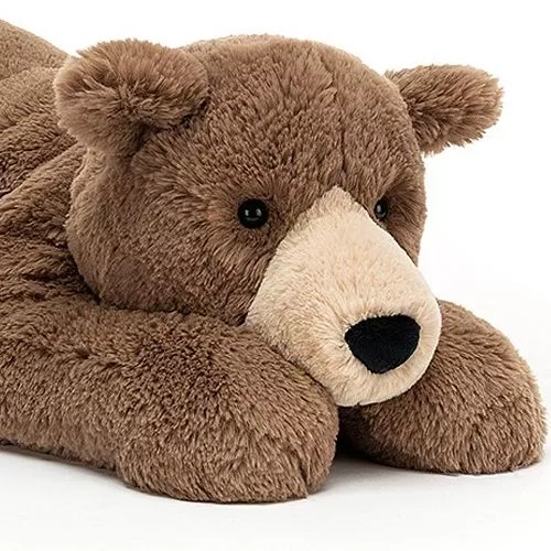 ‘Woody Bear’ van het Engelse merk Jellycat is een grote, vriendelijke knuffelbeer met ronde oren en een lieve kraalogen. De speelgoedbeer heeft een fluweelzachte vacht in een warme hazelnootkleur met een bolle staart en een suède neus. Een grote trouwe knuffel om te knuffelen en om altijd bij de hand te hebben.