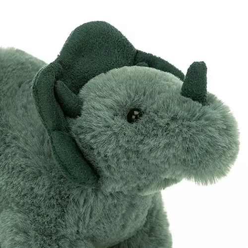 Dit ieniemini dinoknuffeltje ‘Fossilly Triceratops Mini’ van het Engelse merk Jellycat is een hartveroverende herbivoor met vriendelijke kraaloogjes en een fluweelzachte pluche vacht. De mini dino staat te trappelen om te knuffelen en is een prehistorisch maatje voor de allerkleinsten.
