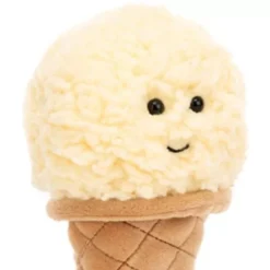 Wie lust er een vanilleijsje? Dit aaibare ijshoorntje ‘Irresistable Ice Cream Vanilla’ van het Engelse merk Jellycat houdt het hoofd koel. Met zijn vriendelijke kraaloogjes, crèmekleurige ijsbolletje en hoorntje met wafelstructuur is dit ijsje een onweerstaanbaar vriendje om te knuffelen of tentoon te stellen.