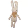 De konijnenknuffel heeft een aaibare pluche vacht en lange poten en flaporen waaraan ze gemakkelijk vast te houden is.