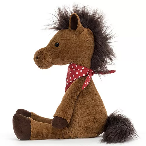 Met zijn gestippelde bandana ziet knuffelpaard ‘Orson Horse’ uit de Dressed to Impress serie van het Engelse merk Jellycat er piekfijn uit. De goedaardige grazer heeft een zachte, caramelbruine vacht, pluizige manen en suedine hoefjes. Een fijne knuffel om te aaien en vertroetelen.