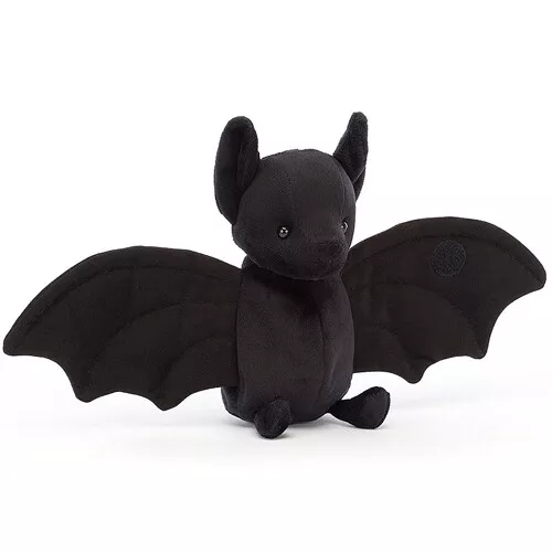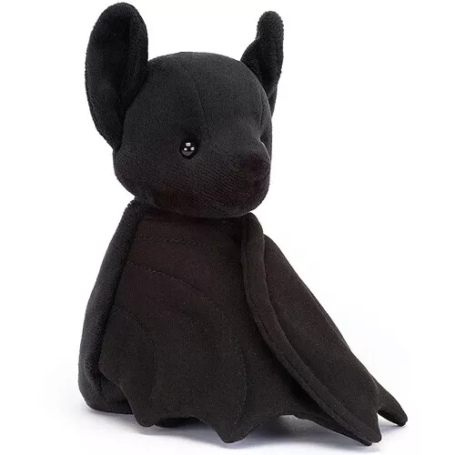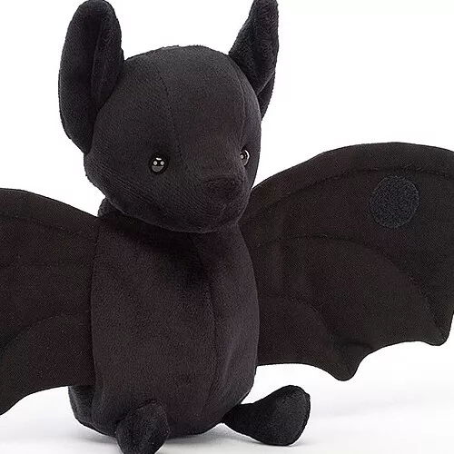 Deze kleine, zwarte knuffelvleermuis ‘Wrapabat Black’ van het Engelse merk Jellycat is ondersteboven van knuffelen. Het fluweelzachte gevlederde vriendje slaat het liefst zijn vleugels om zich heen om warm te blijven. Door het klittenband aan zijn vleugels kan hij heerlijk in deze houding blijven zitten.