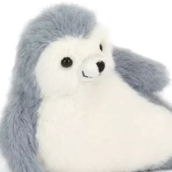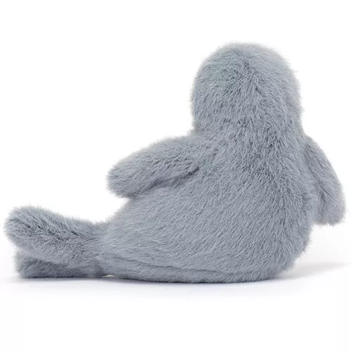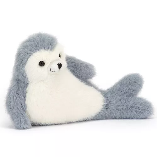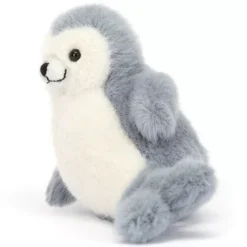 De kleine knuffelzeehond ‘Nauticool Roly Poly Seal’ van het merk Jellycat ligt er bij als een fotomodel, wachtend op een knuffel. Met zijn bolle buikje, zwarte kraalogen en een fluweelzachte, blauwgrijze vacht is dit speelgoedzeehondje onweerstaanbaar.