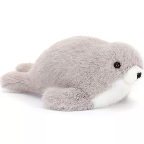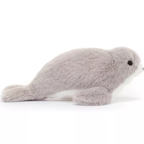 Deze kleine knuffelzeehond ‘Nauticool Grey Seal’ van het merk Jellycat ligt te wachten op een warme knuffel. Met glinsterende kraalogen en een fluweelzachte, zilvergrijze vacht is dit speelgoedzeehondje onweerstaanbaar gezelschap voor de allerkleinsten.