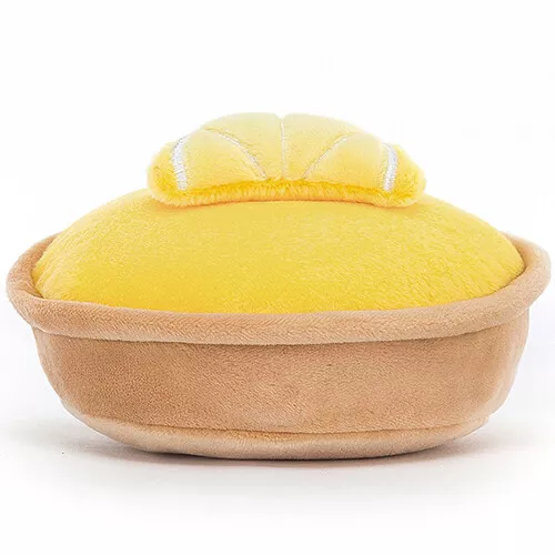 Het zachte knuffelgebakje heeft een aaibare bodem met een citroengele vulling en een geborduurd gezichtje. Vers van de patisserie is dit knuffelige citroentaartje favoriet onder fijnproevers.