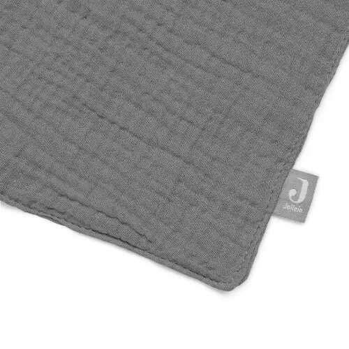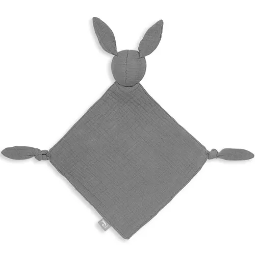 Zoeken naar de speen is niet meer nodig met dit mousseline speendoekje met konijntje ‘Bunny Ears – Storm Grey’ van het Nederlandse merk Jollein.
