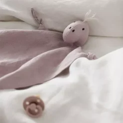 Het toetje van de knuffeldoek is met de hand geborduurd, waardoor iedere babydoek net zo uniek is als zijn mensenvriendje. Het linnen is ademend, vuilafstotend en hypoallergeen.