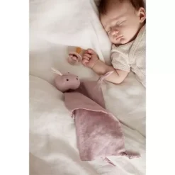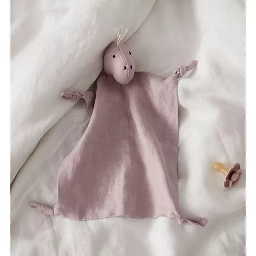 Een linnen knuffeldoek ‘Comfort Blanket Dino Linen Pink NEO’ van het Zweedse merk Kids Concept om mee te tutten en frutten. Deze dinoknuffeldoek biedt troost en bewaart speentjes. Tijdloos babyspeelgoed voor de allerkleinsten.
