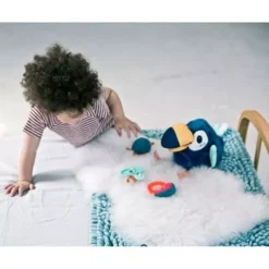 Het verstoppen van de dierenfiguurtjes in Pablo’s bolle buik stimuleert de fijne motoriek van jonge kinderen. De verschillende vormen, materialen en vrolijjke kleuren van de activiteitenknuffel spreken tot de verbeelding en maken van Pablo een nieuw beste vriendje.