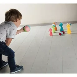 Met ‘Mijn eerste kegelspel Jungle’ van het Belgische merk Lilliputiens wordt bowlen beestachtig leuk! Dit zijn niet zomaar kegels, maar zachte stoffen speelgoedkegeltjes in de vorm van wilde dieren met o.a. een leeuw, een giraffe en een eenhoorn. Een belletje in de bal verhoogt het plezier.