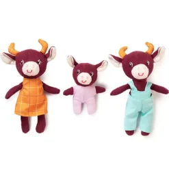 Deze speelgoedset ‘Het gezin van Rosalie de koe’ van het Belgische merk Lilliputiens bestaat uit drie koeknuffeltjes en een matje. Peuters kunnen hiermee naar hartenlust fantaseren en bedenken welke avonturen baby Rosalie en haar ouders allemaal beleven.