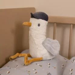 Jack de zeemeeuw uit de ‘Sailors Bay’ collectie van het Nederlandse merk Little Dutch is hier om te knuffelen! Deze komische meeuw draagt een stoere, corduroy pet en heeft geborduurde oogjes. Hij is makkelijk vast te pakken aan zijn lange pootjes en flapperende vleugels.