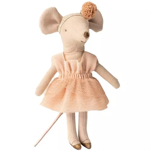 Dit kleine knuffelmuisje ‘Dance Mouse, Big Sister – Giselle’ van het Deense merk Maileg is een elegante prima ballerina in een zalmkleurig balletpakje.