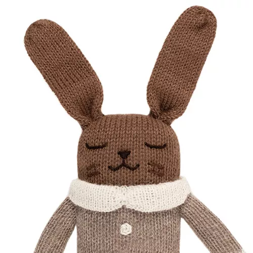 Het konijnenknuffeltje kan aan zijn lange armen en benen makkelijk vastgepakt worden om mee op pad te gaan. De alpacawol voelt zacht aan en is hypoallergeen en antibacterieel.