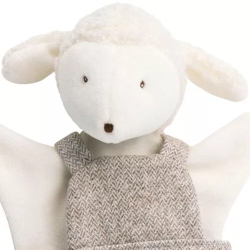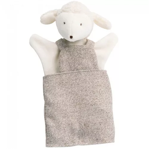 Deze handpop van Albert het lammetje uit de serie ‘La grande famille’ van het Franse merk Moulin Roty steelt de poppenshow.