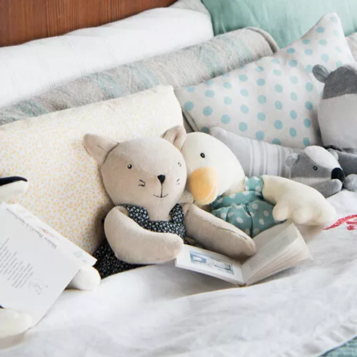 De gezellige knuffeleend ‘Jeanne The Duck’ uit de serie ‘La Grande Famille’ van het Franse merk Moulin Roty geeft met haar vleugels grote knuffels. De zachtaardige eendenknuffel draagt een jurk met stippen en bloemen, heeft stralende kraalogen en vriendelijke snavel.