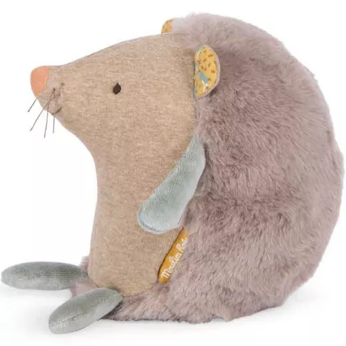 Dit muzikale knuffelegeltje uit de collectie ‘Trois Petits Lapins’ van het Franse merk Moulin Roty heeft een verrassing in de buik. Trek aan een okergeel blaadje en de egelknuffel neuriet zoete melodietjes.