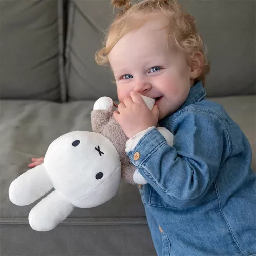 Deze kleine Nijn ‘Nijntje Fluffy Taupe – 25 cm’ van het merk Nijntje-Miffy wacht op een mensenvriendje om mee te kroelen en te knuffelen. Een iconische nijnenknuffel met een beige gekleurd pakje.