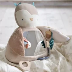 Het activiteitenknuffeltje ‘Blinky the Owl’ in de kleur ‘Maple Beige’ van het Deense merk Sebra. Vriendelijk babyspeelgoed om allerlei interessante geluidjes en vormpjes mee te ontdekken. Ideaal om de zintuigen van de baby te stimuleren.