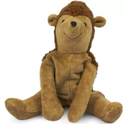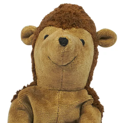 De handgemaakte egelknuffel van katoenen pluche heeft een stevige kop met geborduurde oogjes. Het knuffeldier is gevuld met lamswol.