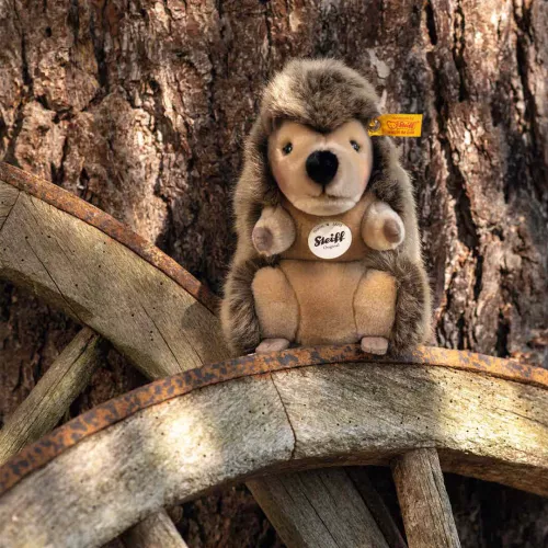 Met glinsterende kraaloogjes en een zachte stekelvacht vraagt deze knuffelegel ‘Joggi’ van het Duitse merk Steiff om knuffels. De egelknuffel van zacht imitatiebont voelt heerlijk zacht en natuurlijk aan. Onweerstaanbaar aaibaar gezelschap.