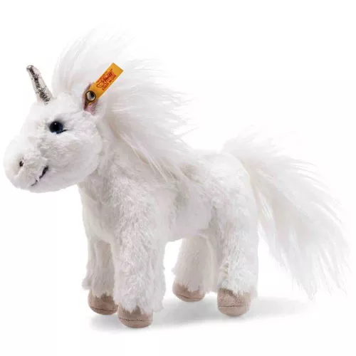 Soft Cuddly Friends Unica is een kleine, staande knuffeleenhoorn van het Duitse merk Steiff. Met haar sierlijke manen en staart van zacht pluche, glanzende hoorn en lieve, blauwe kraalogen, is zij hartveroverend. De witte speelgoedeenhoorn van zacht geweven pluche, voelt heel zacht en natuurlijk aan.
