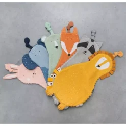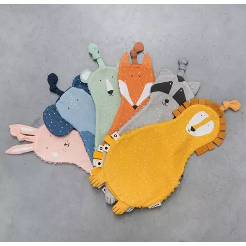 ‘Flat Pacifier Cuddle – Mrs. Rabbit’ van het Belgische merk Trixie is een heerlijk zacht troeteldoekje voor in de box of wieg. Met haar vriendelijke toet, labeltjes en ruggetje van corduroy is deze babyknuffel een eindeloos aaibaar maatje voor ieder kind. Aan het koord aan de bovenkant van de knuffeldoek kan een fopspeen bevestigd worden.
